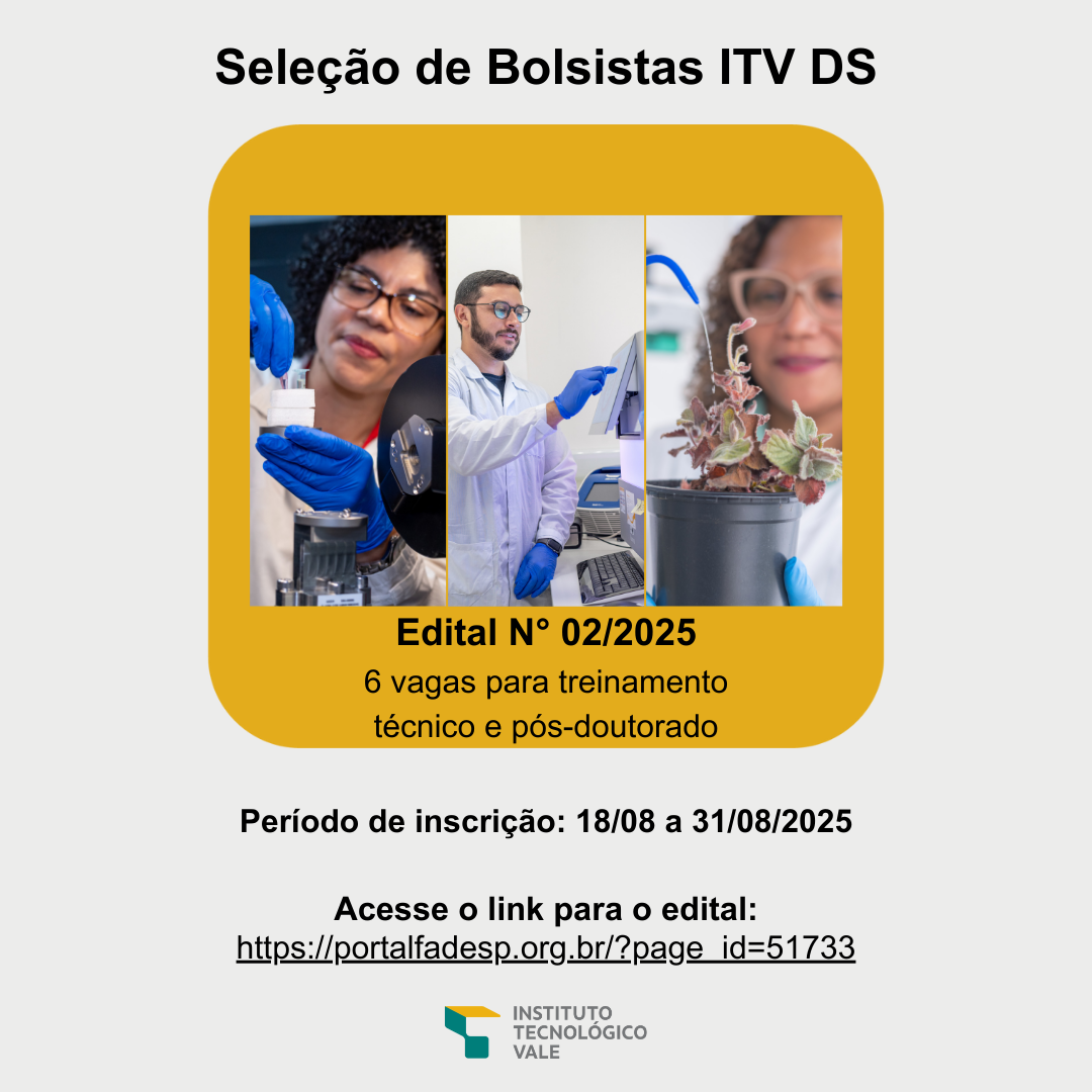 O edital para seleção de bolsistas do Instituto Tecnológico Vale Desenvolvimento Sustentável (ITV DS) está no ar!